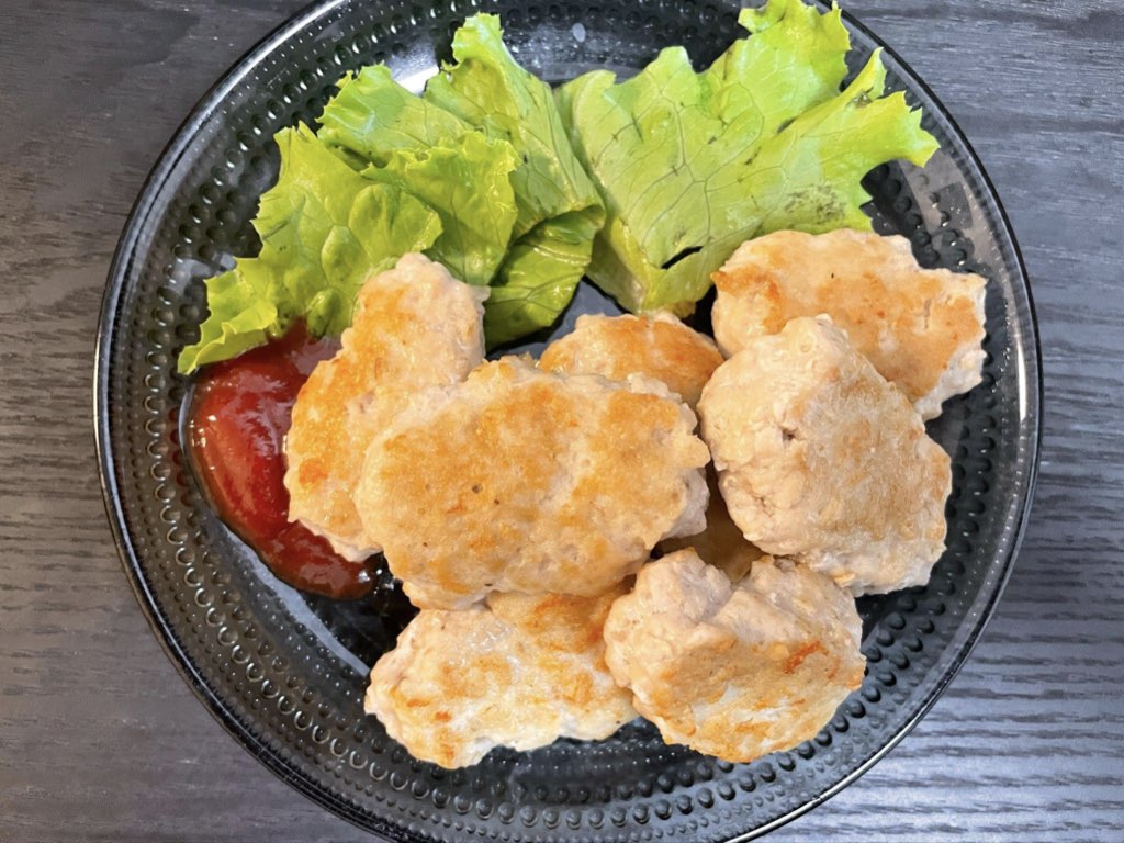 ダイエット中の食欲を満たしたいなら、ジャンキーな味わいなのにヘルシーなチキンナゲットがおすすめ。オートミールでかさましすることで少量のお肉でも大満足。もちもち食感で腹持ちも良い一品です。